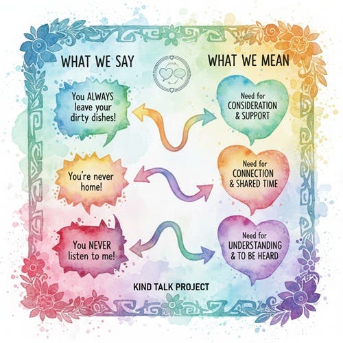 What’s a recurring fight in your relationship, and what deeper need is hiding underneath it? Drop a comment below and try translating your conflict into what you’re really asking for.